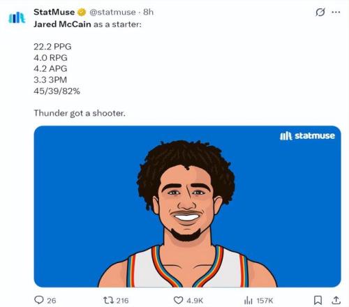 3.麥凱恩雖然身高只有1.91米但他擅長打無球,過去六場比賽三分26中15明顯回暖,他很適合在雷霆陣容中,他的作用可以跟米切爾互補;