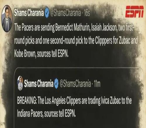 北京時間2月6日,據(jù)名記Shams報道,快船與步行者達(dá)成一筆2換5的交易,前者送出祖巴茨和科比·布朗,從后者引入馬瑟林、以賽亞·杰克遜、2個首輪簽(2026年受保護(hù),2029年無保護(hù))以及1個次輪簽。
