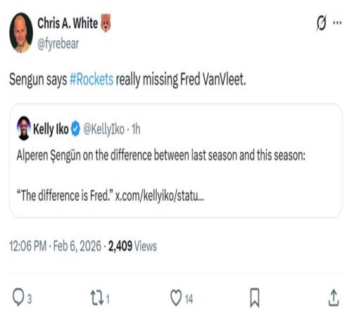 火箭隊苦吞2連敗,申京僅7分仍不忘全明星!遭KD烏度卡場上場下連續(xù)批評后,賽后公開表示想念范喬丹。