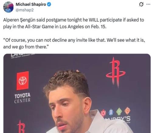 結果在表現(xiàn)如此糟糕的情況下,賽后談及全明星話題,申京仍表示如果全明星賽邀請他參賽,他一定會出戰(zhàn)。