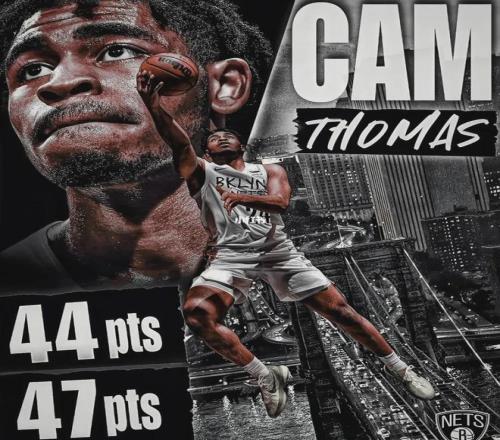 托馬斯出生于2001年10月13日,身高1米91,21屆首輪第27號秀,為期四年半的籃網生涯,合計出戰(zhàn)239場常規(guī)賽,場均上陣23.3分鐘,貢獻15.2分2.5板2.2助1.5失誤,三項命中率43.5%、34.3%和85.8%,曾在2023年初連續(xù)三場40+,分別轟下44分、47分和43分。