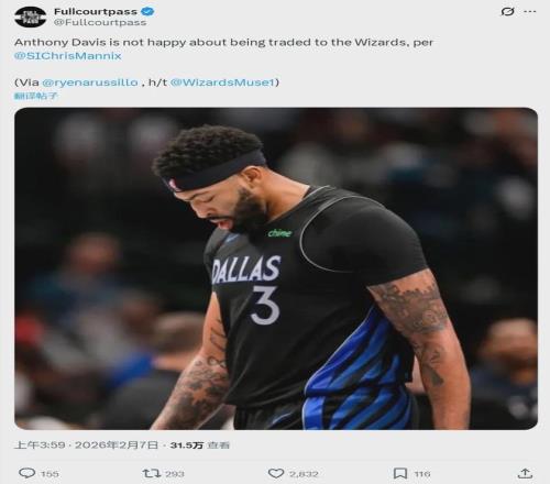 北京時間2月7日,據(jù)《體育畫報》記者Chris Mannix報道,安東尼-戴維斯對自己被交易到奇才感到不滿。另據(jù)TA記者Joe Vardon報道,在濃眉去奇才的交易中,經(jīng)紀人里奇-保羅事先并不知情。話說回來,球隊交易不一定要征求經(jīng)紀人的意見。