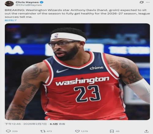 北京時(shí)間2月7日中午,據(jù)NBA名記Chris Haynes報(bào)道,奇才球星安東尼-戴維斯因?yàn)槭植亢透构蓽蟼。举惣菊綀?bào)銷,有望在2026-27賽季完全康復(fù)。濃眉(5413萬美元)與特雷-楊(4639萬美元),本賽季薪水合計(jì)1億美元!