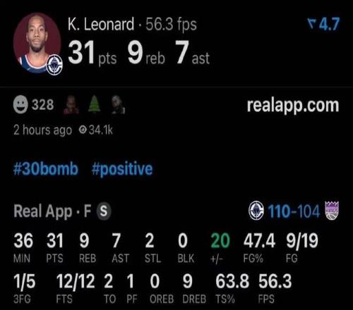 這是倫納德連續(xù)30場(chǎng)20+,侵略性十足