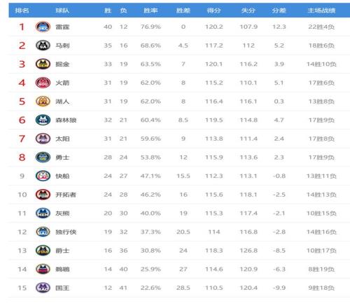 今日比賽后西部排名沒(méi)有變化,只是勝場(chǎng)差距有所變化。