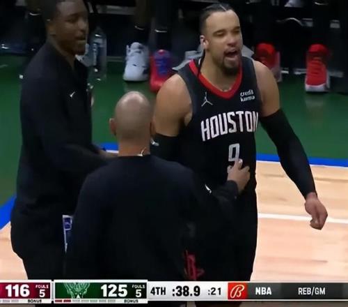 對陣雄鹿的比賽中,狄龍因為不滿裁判判罰與其理論時,火箭主帥烏度卡沖入場內(nèi)為狄龍維權(quán)。