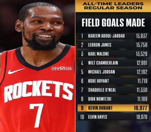 杜蘭特生涯總進(jìn)球數(shù)超越埃爾文-海耶斯,升至歷史第9位迎來(lái)里程碑。
