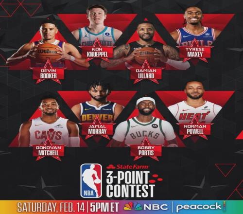 近日NBA官宣全明星三分大賽參加名單,分別有布克(太陽(yáng))、克尼佩爾(黃蜂)、利拉德(開(kāi)拓者)、馬克西(費(fèi)城)、米切爾(騎士)、穆雷(掘金)、波蒂斯(雄鹿),以及鮑威爾(熱火)。