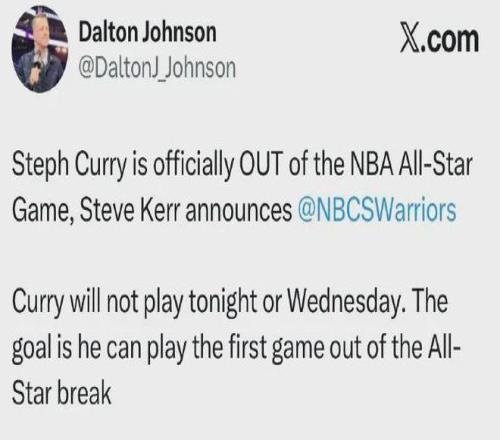 勇士主帥科爾宣布:庫(kù)里將缺席2026年NBA全明星賽......