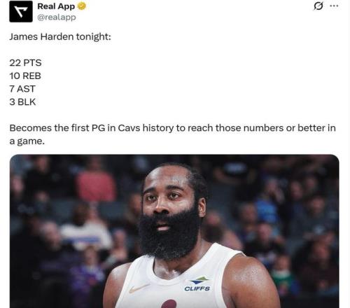 值得一提的是,哈登在此役還創(chuàng)下了神跡。數(shù)據(jù)顯示,哈登是騎士隊史首位單場砍下至少22分10籃板7助攻3蓋帽的控衛(wèi)球員。