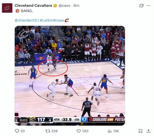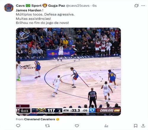 這場(chǎng)比賽詹姆斯-哈登再度成為克利夫蘭的超級(jí)英雄,在上一場(chǎng)對(duì)陣國(guó)王的末節(jié)他連續(xù)命中關(guān)鍵三分,末節(jié)4中4拿到15分(7分鐘),而這場(chǎng)比賽對(duì)陣聯(lián)盟頂級(jí)豪強(qiáng)掘金,哈登在末節(jié)又用三分球幫助騎士續(xù)命。