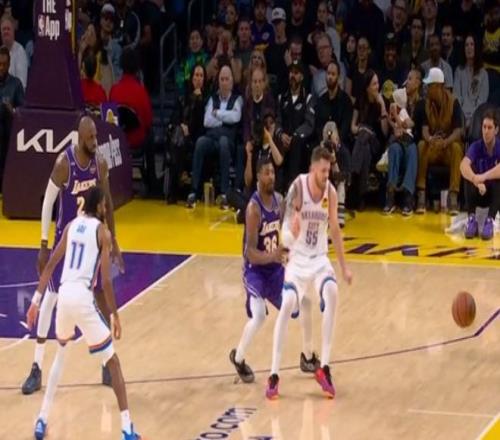 第四節(jié)決戰(zhàn),哈滕空切接球上籃造成范德比爾特犯規(guī),湖人挑戰(zhàn)成功改湖人球權(quán)??斔髁P球時哈滕和艾頓同時提前進線,裁判又吹罰中圈跳球。斯瑪特身后捅掉哈滕接球出界,裁判給到雷霆球權(quán),湖人接著挑戰(zhàn)再成功,裁判太搶戲了,這是真是主場?華萊士前場搶斷后助攻杰威打進,回放顯示華萊士疑似先出界,湖人又吃虧,切特搶下前場板暴扣得手,雷霆還剩1分鐘領(lǐng)先湖人5分,最終,湖人110-109無緣逆轉(zhuǎn),慘遭雷霆雙殺。