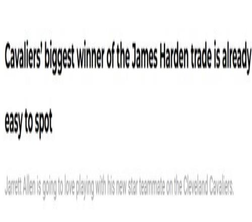 哈登加盟后,也讓騎士中鋒艾倫的表現(xiàn)明顯提升。在哈登來(lái)之后的兩場(chǎng)比賽中,艾倫場(chǎng)均25.5分11.5籃板1助攻;在哈登來(lái)之前,艾倫出戰(zhàn)40場(chǎng)比賽,場(chǎng)均13.9分8.1籃板2.1助攻1.1搶斷0.9蓋帽。此前,加內(nèi)特曾說(shuō)哈登能讓莫布利和艾倫每場(chǎng)多拿6-8分,現(xiàn)在看來(lái),提升作用真的不小!克利夫蘭媒體感慨,他成為哈登交易的最大贏家。