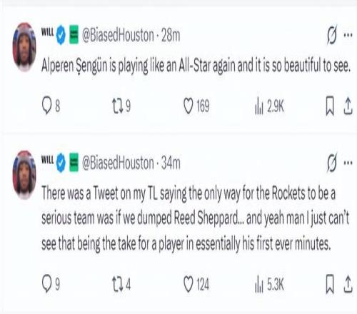 隨后他還寫道:申京現(xiàn)在又表現(xiàn)的像一位全明星球員了,看到這一幕真的太美妙了。此前還有人建議火箭放棄謝潑德,他們認(rèn)為只有放棄謝潑德火箭才能成為強(qiáng)隊(duì),伙計(jì)們我真的無法想象在生涯前兩個(gè)賽季就被放棄的高順位球員。