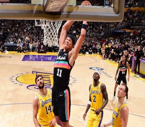 末節(jié),克內(nèi)克特拋投得分,奧利尼克上籃得分。蒂米三分命中,蒂耶羅扣籃2+1,蒂米又連得4分,把分差縮小到21分。約翰遜扣籃,麥克勞克林三分命中,奧利尼克上籃得分,麥克勞克林搶斷得分,馬刺回敬一波9-0。布朗尼三分命中,卡特-布萊恩特中投得分。布朗尼拋投命中,哈珀上籃得分。最終,馬刺輕松擊敗湖人,拿下5連勝。