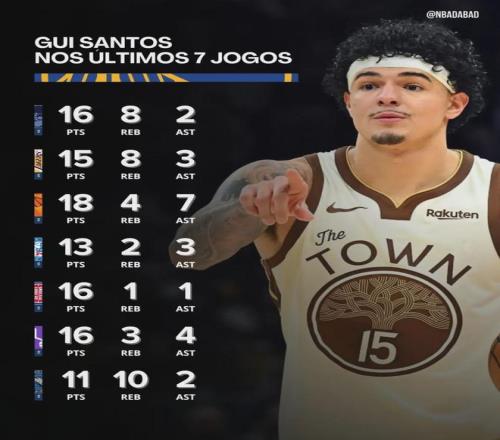 2022年NBA選秀大會,桑托斯在第55順位被勇士選中,他的起點(diǎn)并不算高。新秀賽季=他一直在發(fā)展聯(lián)盟效力,場均12.7分6板2.2助,直到2023年11月8日,勇士才將其正式簽下。2023-24賽季場均出戰(zhàn)8.3分鐘,僅得2.1分0.6板。