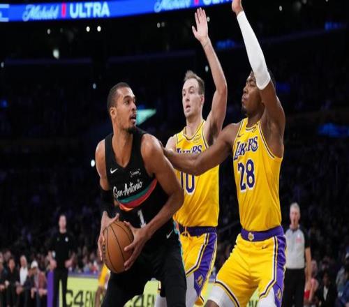 北京時(shí)間2月11日,NBA常規(guī)賽繼續(xù)火熱進(jìn)行。湖人坐鎮(zhèn)主場挑戰(zhàn)西部排名第2的馬刺,圣安東尼奧近日取得了4連勝,目前斗志旺盛。背靠背作戰(zhàn)的紫金軍團(tuán),則面臨著巨大的人員輪換壓力。此役,勒布朗詹姆斯、盧卡東契奇、里夫斯、艾頓、斯馬特5大核心傷停,雷迪克調(diào)整了陣容,八村塁、拉拉維亞、海斯、肯納德與巴夫金攜手出任首發(fā)。米奇約翰遜的首發(fā)五虎是文班亞馬、卡斯?fàn)枴⒏?怂埂⑸信聊崤c瓦塞爾,巴恩斯擔(dān)任替補(bǔ)。該場比賽是兩隊(duì)本賽季的第4次交手,前3戰(zhàn)2勝1負(fù)的馬刺渴望延續(xù)強(qiáng)勢表現(xiàn)。兩大超人氣球隊(duì)的較量,一觸即發(fā)。