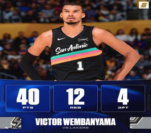 文班亞馬40+12創(chuàng)歷史第1神跡還刷爆紀(jì)錄,詹皇缺戰(zhàn),馬刺完勝湖人