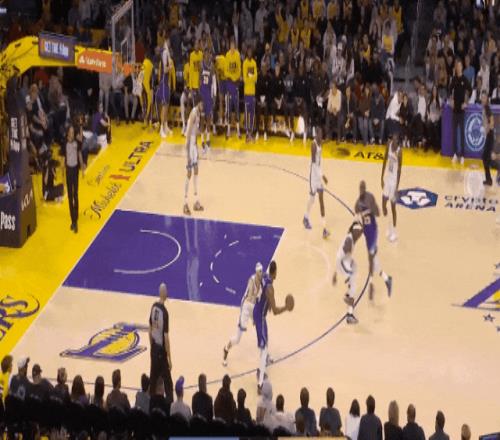 然后是一個(gè)切特輪轉(zhuǎn),勒布朗直喂內(nèi)切的八村上籃,切特補(bǔ)位不及。