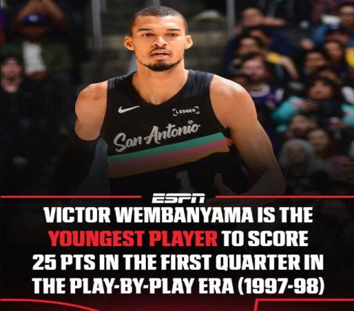 而最讓人驚嘆的,還要當(dāng)屬圣安東尼奧馬刺隊(duì)的最強(qiáng)狀元文班亞馬。就在剛剛結(jié)束的客場(chǎng)對(duì)陣湖人一戰(zhàn),文班亞馬在僅僅26分鐘的時(shí)間里,20投13中,三分6中4,罰球12中10,狂轟40分12籃板2助攻2搶斷1蓋帽,不單單刷爆了隊(duì)史紀(jì)錄,更是NBA歷史首位在26分鐘內(nèi)砍下至少40分12籃板的球員,一戰(zhàn)封神!