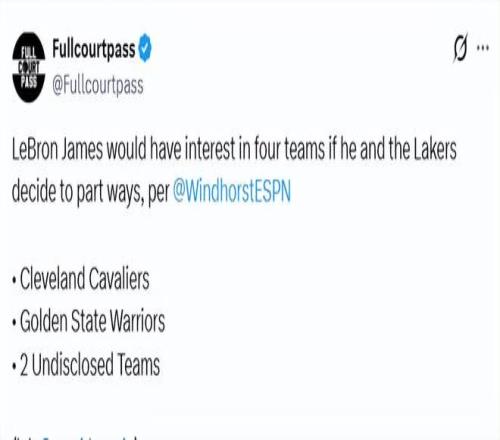 曝詹姆斯有興趣加盟三四支球隊!騎士勇士在列若要頂薪難留湖人