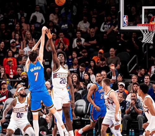 衛(wèi)冕冠軍雷霆盡管缺少了亞歷山大,但他們?cè)诳蛨?chǎng)仍然以136-109大勝太陽(yáng),迎來(lái)兩連勝,以42勝13負(fù)穩(wěn)居第一。本場(chǎng)比賽雷霆多點(diǎn)開(kāi)花,7人得分上雙,杰倫-威廉姆斯發(fā)揮高效12投11中,僅僅投丟了一球,拿到了全隊(duì)最高分28分4籃板5助攻,替補(bǔ)球員喬命中了6記三分,加上4罰3中拿到了21分。太陽(yáng)缺少了布克、格林、阿倫,他們受到的影響更加明顯,狄龍19投9中空砍了23分5籃板4助攻,而且這一場(chǎng)比賽,狄龍又吃到一次技術(shù)犯規(guī),累計(jì)16次T,下一場(chǎng)比賽不得不被禁賽。