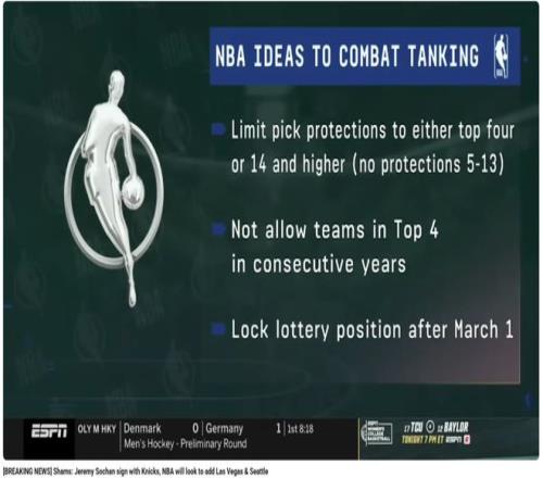 最初的三個想法是:限制選秀權(quán)保護條款、禁止球隊連續(xù)兩年獲得前四順位、3月1日后鎖定樂透區(qū)排名。
