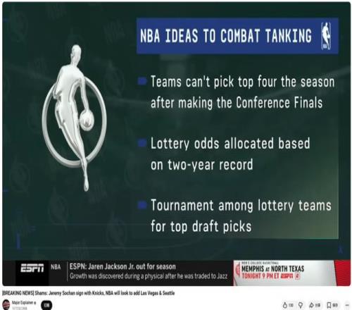 其實聯(lián)盟一直都在刻意控制擺爛行為,不僅調(diào)整過抽中前四順位簽的概率,自從19年以來戰(zhàn)績最差的球隊還從未拿到過狀元簽。