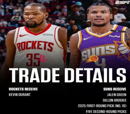去年休賽期火箭隊(duì)用杰倫-格林、狄龍、2025年10號(hào)簽、5個(gè)次輪簽從太陽(yáng)換來(lái)了凱文-杜蘭特,CBS、TA、ESPN多個(gè)權(quán)威媒體都給出了A-或A的交易評(píng)級(jí),可隨著賽季的深入這種風(fēng)評(píng)呈現(xiàn)了相反的態(tài)勢(shì)。