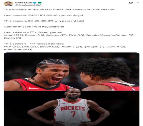 2025-2026賽季的NBA即將進(jìn)入全明星周末,休斯頓火箭隊(duì)全明星周末前拿到33勝20負(fù)排在西部第四,火箭隊(duì)距離西部第二的馬刺有著4.5個(gè)勝場(chǎng)差距較大,而上賽季的火箭隊(duì)拿到了西部第二的出色成績(jī),人們開(kāi)始懷疑火箭引進(jìn)凱文-杜蘭特是否算成功。