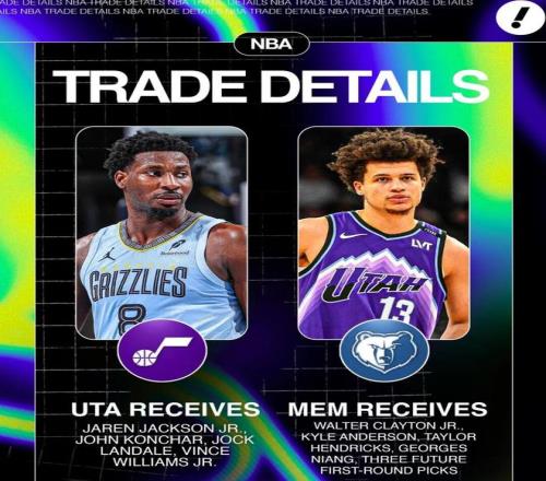 此前截止日前,爵士與灰熊達(dá)成一筆交易,具體細(xì)節(jié):
