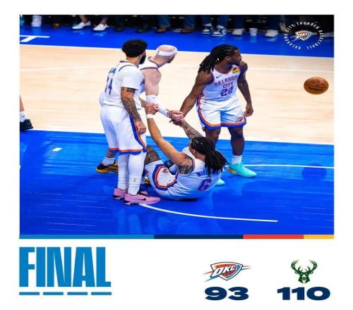全明星前的最后一個(gè)比賽日,雷霆主場(chǎng)93-110不敵雄鹿。