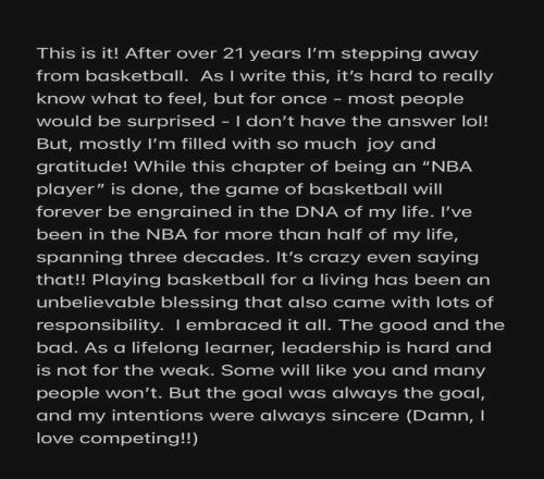 緊接著保羅在個人社媒宣布正式退役,結(jié)束自己長達21年的NBA球員生涯。
