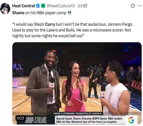 原因是Shams今天去參加了NBA名人賽。