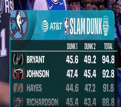 扣籃大賽預(yù)賽:卡特布萊恩特、凱沙德約翰遜晉級(jí)決賽
