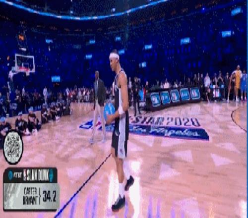我以為 約翰遜要扣一個(gè)驚天動(dòng)地的,結(jié)果他竟然致敬海斯,扣了個(gè)拉在地上的,47.8分,47分都是給他的舞蹈的。