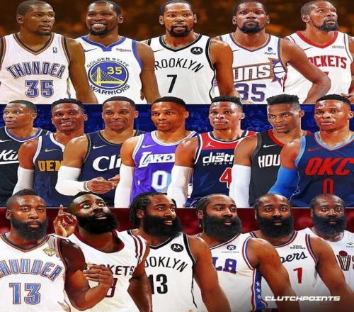 誰(shuí)能想到,曾經(jīng)的雷霆三少,如今成了聯(lián)盟里的“球衣收藏家”。賽季至今杜蘭特5隊(duì),哈登6隊(duì),威少7隊(duì),而且有很大概率,這個(gè)數(shù)字還會(huì)繼續(xù)增加。