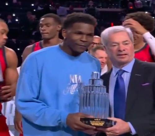 縱觀三支隊伍,新星隊也是最多點開花的一隊,他們沒有文班這種內線巨無霸也沒有倫納德這種一人成軍,但他們每場比賽都有人站出來,愛德華茲總計砍下32分9籃板3助攻1搶斷(算三節(jié)累計數(shù)據)最終加冕全明星賽MVP。