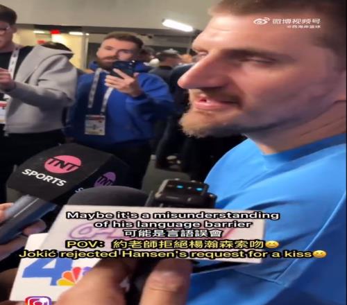在今天的NBA全明星周末正賽結(jié)束之后,一位中國記者提問了約基奇,“約基奇先生,請問一下楊瀚森,中國球員楊瀚森想要親吻你?”