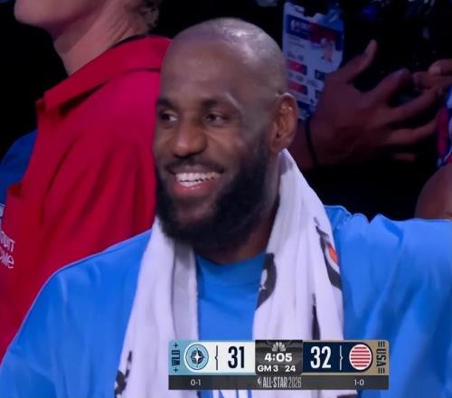 而且其實也能夠看到,文班亞馬用這種態(tài)度對待比賽,征服了很多NBA的老球員,甚至包括了當今聯(lián)盟第一人,勒布朗詹姆斯。美國媒體再次曝光了一個鏡頭,在對陣世界隊的比賽當中,詹姆斯坐在板凳席上笑罵文班亞馬,對他這種認真投入,專注比賽的行為感到非常欽佩。