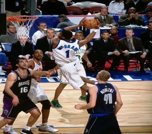 第三位,特雷西·麥克格雷迪。麥迪的巔峰期確實短,滿打滿算也就魔術(shù)那4年,可就是這短短幾年,他讓全世界見識到了什么是天賦怪的進(jìn)攻。他是NBA歷史上唯一一個,在后衛(wèi)和小前鋒兩個位置都入選過最佳一陣的球員,1號位到3號位隨便切換,靜態(tài)天賦、動態(tài)天賦全是頂級。