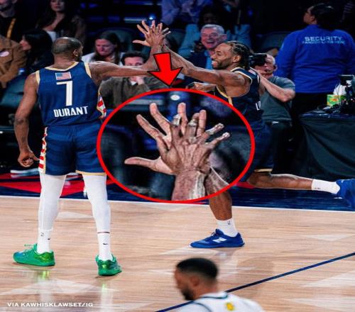 在倫納德的個(gè)人IG上有一張圖,杜蘭特與倫納德?lián)粽?,隨后這張圖引起了全美媒體的熱議,因?yàn)槎盘m特的手掌比倫納德小了一大圈。