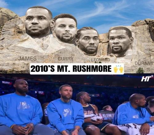 凱文-杜蘭特在全明星周末唯一的正面報(bào)道,可能就是這張圖,被譽(yù)為是21世紀(jì)的‘總統(tǒng)山’,詹姆斯、庫里、倫納德、杜蘭特,這四人12次總冠軍,7次MVP,9次FMVP。