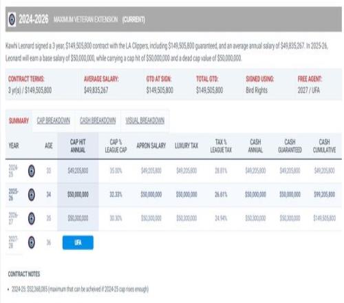34歲的倫納德在明夏合同到期,他現(xiàn)在進(jìn)入生涯最巔峰的一個(gè)賽季對(duì)明夏合同有著巨大的影響。