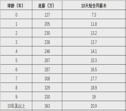 10天合同能拿多少錢(qián)?NBA一個(gè)賽季是174天,10天合同的薪水就是NBA底薪除以174,再乘以10。由于球員在NBA效力年限不同,底薪合同以及10天合同的金額也不一樣。普拉姆利已經(jīng)打了13個(gè)賽季,10天合同能拿到20.9萬(wàn)美元。