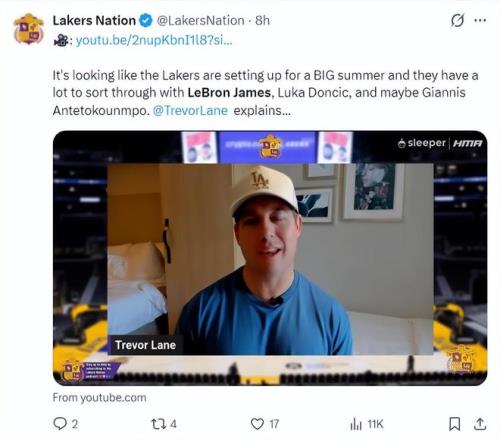 根據(jù)湖人記者Trevor Lance的分析,湖人隊(duì)今夏會迎來一個輝煌的夏天,他們需要處理好詹姆斯的合同,東契奇、揚(yáng)尼斯的潛在合作也是一個契機(jī)。Trevor Lance也認(rèn)為今夏詹姆斯有離隊(duì)的可能性,因?yàn)楹岁?duì)會要求詹姆斯接受大幅度的降薪,甚至希望詹姆斯接受老將底薪,這樣才能交易、先簽后換一個超級巨星。