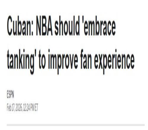 目前仍持有獨行俠股份的庫班對聯(lián)盟這一做法提出質(zhì)疑,并表示聯(lián)盟在擺爛問題上應(yīng)該更透明。
