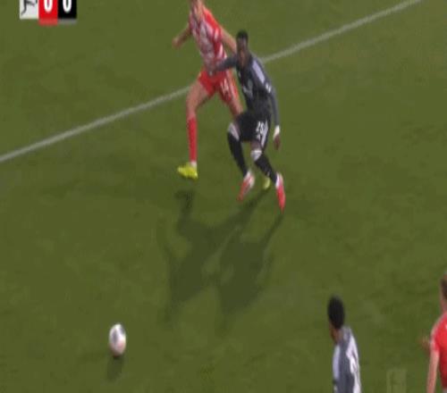 第68分鐘,舍費爾踩到布朗腳后跟,裁判對其出示黃牌警告