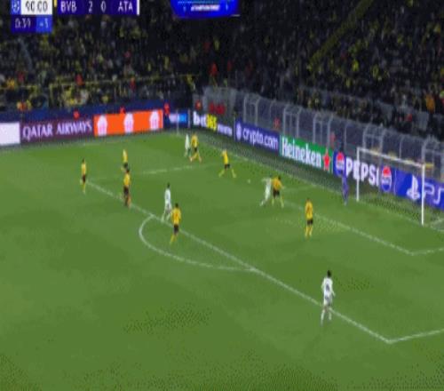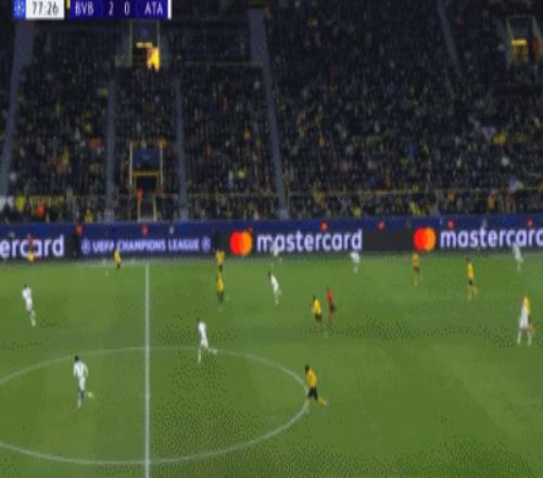 第42分鐘,吉拉西左路傳中,拜爾后點(diǎn)推射空門破門,多特2-0亞特蘭大