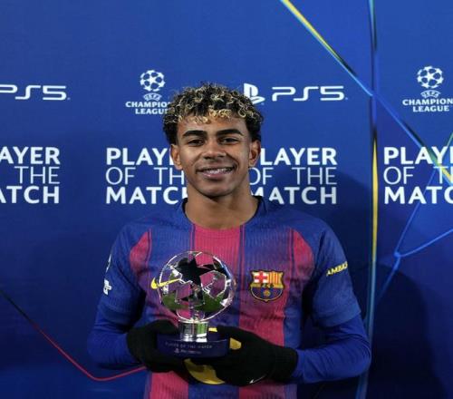 歐冠聯(lián)賽階段第8輪,巴塞羅那主場4-1擊敗哥本哈根,此役傳射建功的巴薩前鋒亞馬爾當選歐冠官方全場最佳球員。